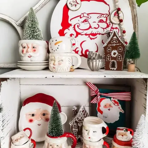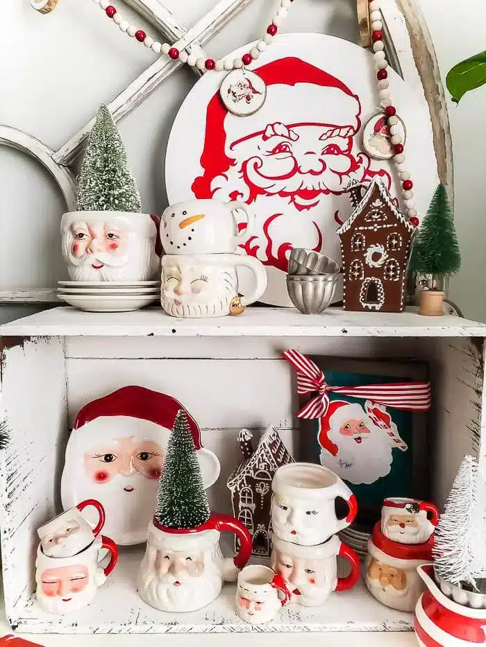Create a charming holiday ritual by decorating your coffee bar with vintage finds, Santa mugs, and handcrafted Christmas accents.