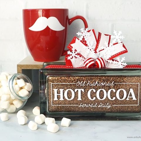 Add a bit of sparkle and charm to your hot cocoa setup with this darling hot cocoa glass block cecoration.