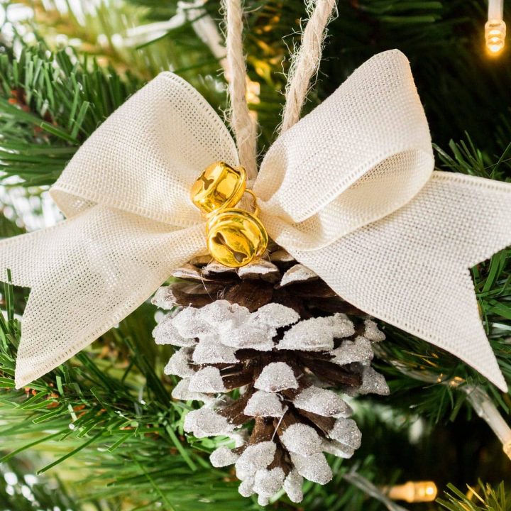 What could be more charming than a rustic pinecone decoration? Adorable rustic and flocked pine cone Christmas ornaments!