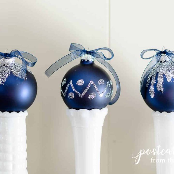 Create some easy DIY glittered ornaments with this tutorial from Angie with Postcards From the Ridge.