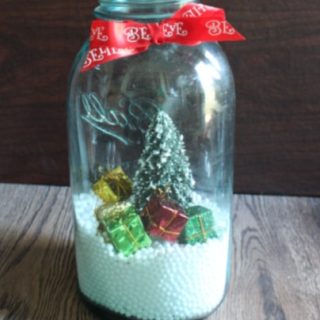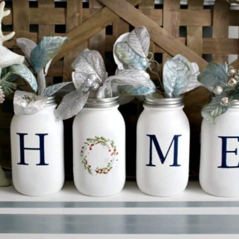Create a beautiful Christmas centerpiece using mason jars that’s perfect for your kitchen or dining room table. It can also be used to adorn a window sill.