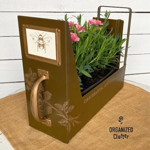 This is one of my favorite Spring decorating projects. Ever thought of upcycling a magazine rack into a planter? Get all the details for this beauty!
