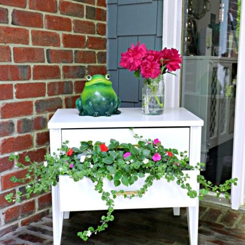 Julie from Redhead Can Decorate took an old nightstand and gave it new life...as a garden planter!