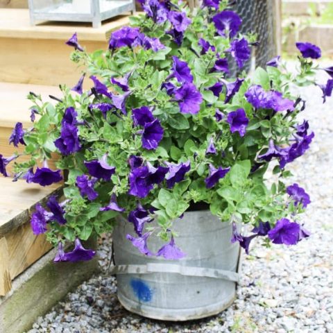 Galvanized buckets, wash tubs and vintage mop buckets can be turned into fabulous flower pots-just be sure to add drainage holes.
