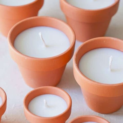 Terracotta pots can be used in different sizes as the perfect vessel for hand poured candles. The small size is perfect for votives!