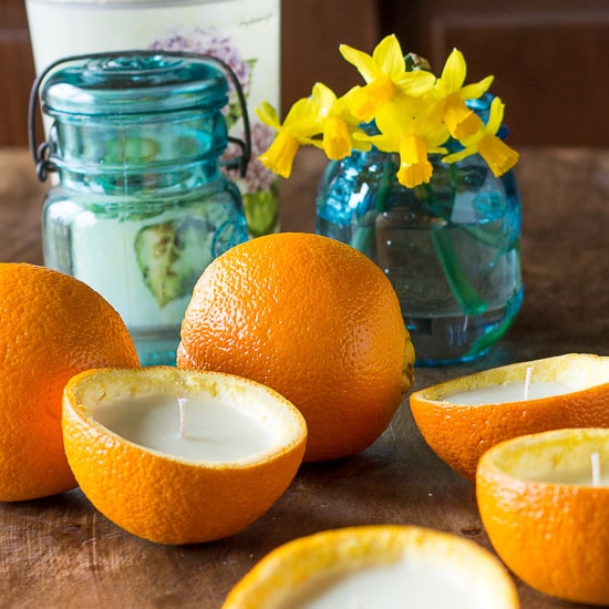 Patty from Hearth and Vine shares an easy tutorial on how to make candles from orange peels. Isn't this a fun idea? You can also use lemon peels. They must smell so good!