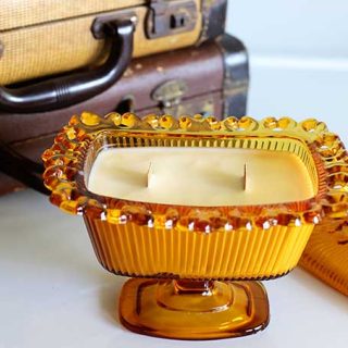 We love how Pam from House of Hawthornes used her grandmother's vintage candy dish to make a lovely handmade candle. The wood wicks are a great touch!