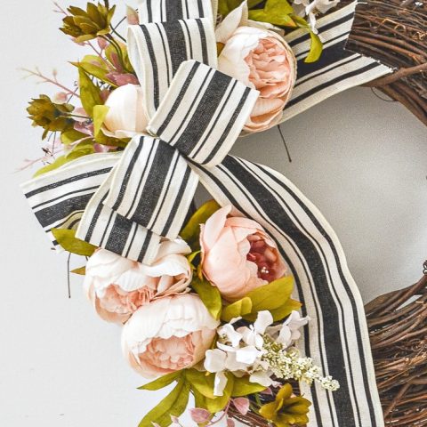 Beautiful peonies create a soft and serene look for a front door wreath. Add an extra-wide ribbon for that wow factor!