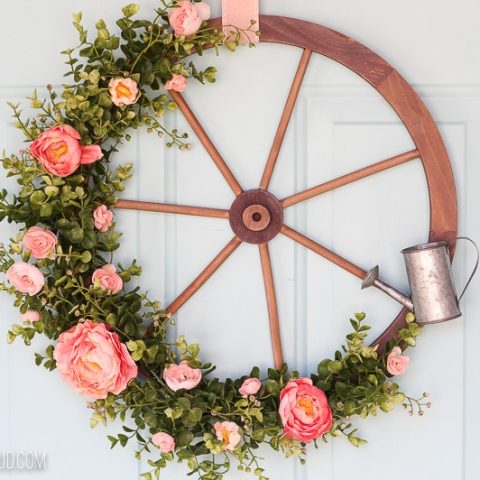 Use an old wagon wheel to create a unique and gorgeous farmhouse style floral wreath. Lydia from Lydi Out Loud shares a simple tutorial.