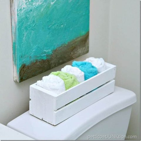 Repurpose wood wine crates into charming organizers that add character to your bathroom while efficiently storing hand towels, toiletries, and other essentials.