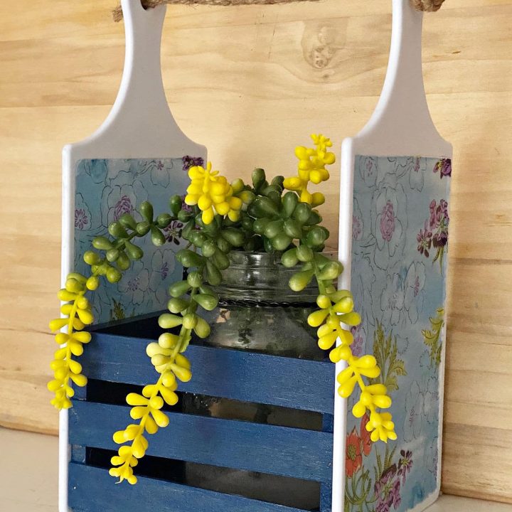 All you need is a Dollar Tree wooden crate and 2 cutting boards to make the cutest little caddy. Check out 4 different ways to use this simple DIY project.