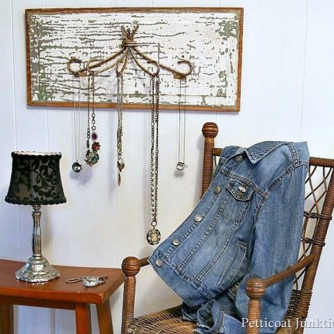 Do you decorate in a coastal or boho style? This hanging necklace organizer will make a great addition to your bedroom. You can't get much easier than this and it is a great way to upcycle.