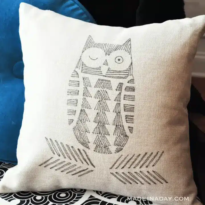 Create an adorable pillow with eye-catching owl stencil designs. Kim from Made In A Day shares an easy DIY guide for this stylish home accent piece.
