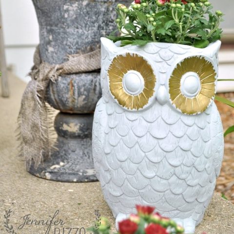 These dull owl planters from Walmart were updated with paint, including a pop of gold. Add a jar of flowers or a plant for pretty seasonal decor.