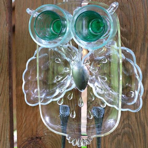 Pam from House of Hawthornes got creative by upcycling thrift store glass snack sets into the cutest owl garden art. This is such a fun way to welcome friends and family to your home.