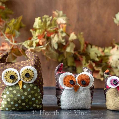 Upcycle fabric scraps into cute owl plushies with this free printable pattern. This is an easy and adorable craft perfect for beginners and seasoned sewers alike.