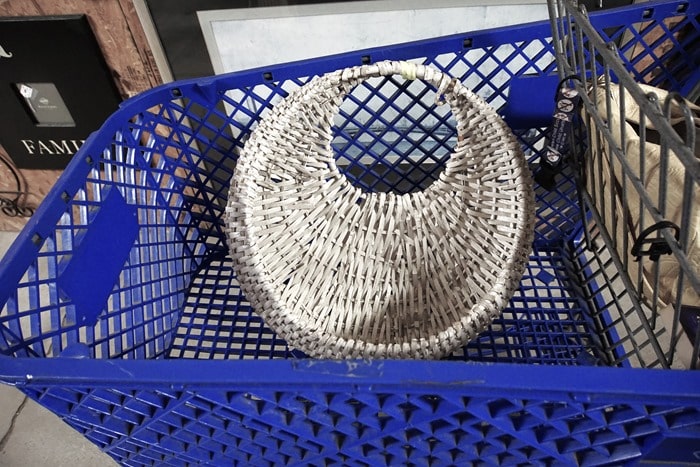 I love simple projects and this is one of the simplest. I bought the white wicker basket at a local flea market for less than $5. You can’t beat that. It is a really large basket and has a nice shabby chic look.