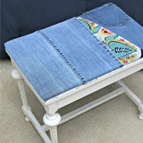Everyone has old denim jeans. When they get too worn or the size isn't right anymore (my problem), cover a chair seat with them.