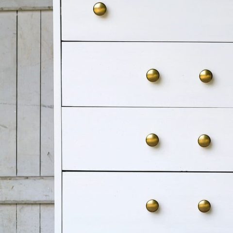 You can't go wrong with a classic white painted furniture chest with gold metallic knobs. The combination is timeless and striking.