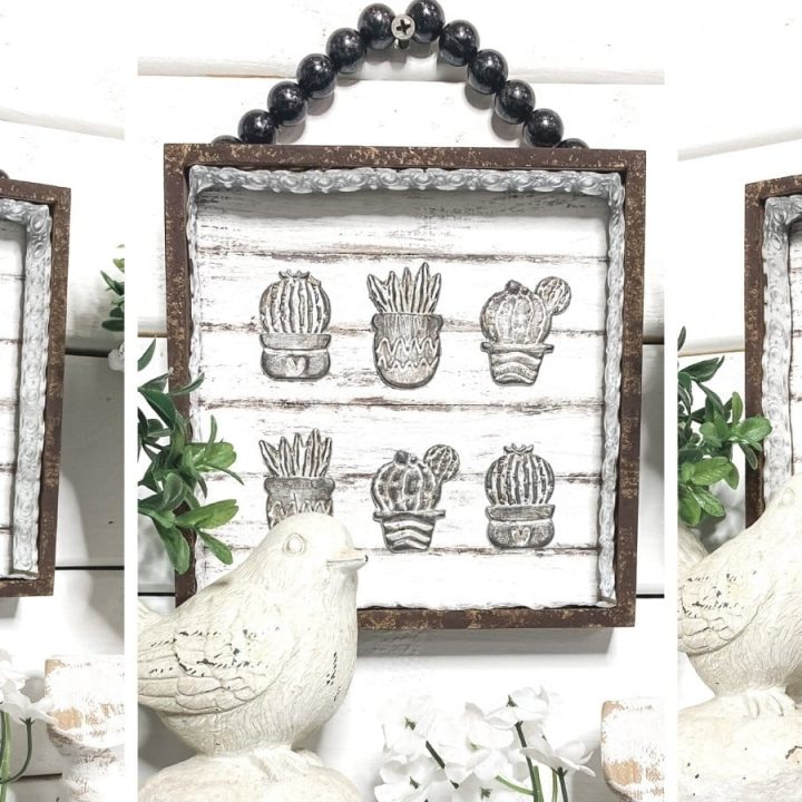 I'm blown away by this fantastic upscale DIY rustic sign from Amber with The Makers Map. It features Dollar Tree cactus succulent stickers.