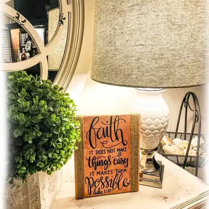This pretty wooden box features a whitewash finish that compliments the Dollar Tree decal beautifully.