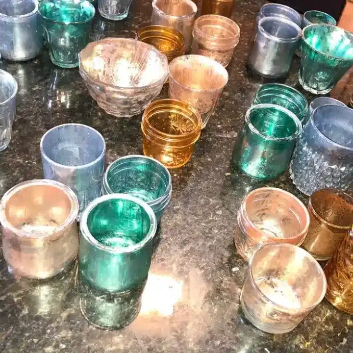 Did you pick a favorite mercury glass project? To create a unique piece, all you need is a glass jar, bottle, wine glass, etc., and paint.