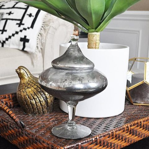 Elevate thrift store finds or other home decor pieces with a gorgeous faux mercury glass look. This piece looks right at home next to a vintage brass bird.