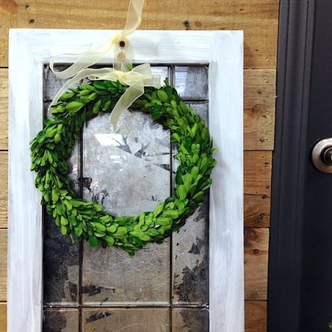 Jennifer from Jennifer Rizzo shares a different way to get an aged faux mercury glass look using paint and silver leaf. This old window is simply stunning!