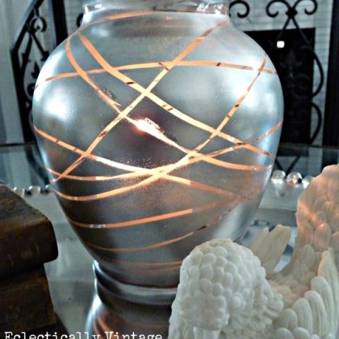 Turn a simple dollar store vase into an elegant glimmering candle holder. Get the easy tutorial.
