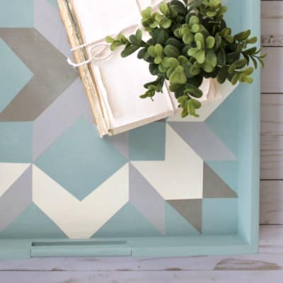 All you need is Frog tape and chalk paint in different colors to make your own painted tray with a farmhouse style quilt pattern. This would be pretty hung on a wall!