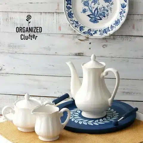 Carlene from Organized Clutter took an inexpensive Goodwill tray and updated it with paint and a stencil for a lovely look.