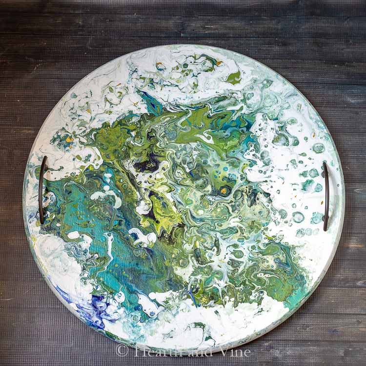 Patty from Hearth and Vine took a plain wood round tray and updated it with a paint pour technique. This is a surprisingly simple project that really brings that wow factor. Add a touch of whimsy to your decor with this super cool project.