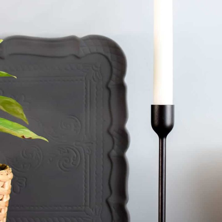This easy silver tray makeover really shows the power of paint. The rich dark gray chalk paint creates a dark and moody look that blends better with the owner's home decor.