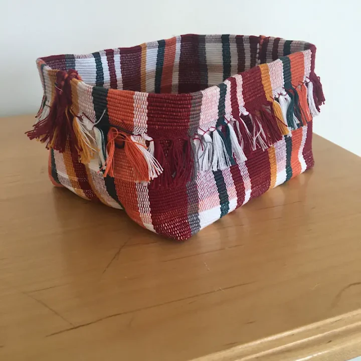 Can you believe this adorable basket is made from old placemats? Think of the different designs you can make with thrift store or even dollar store placemats.