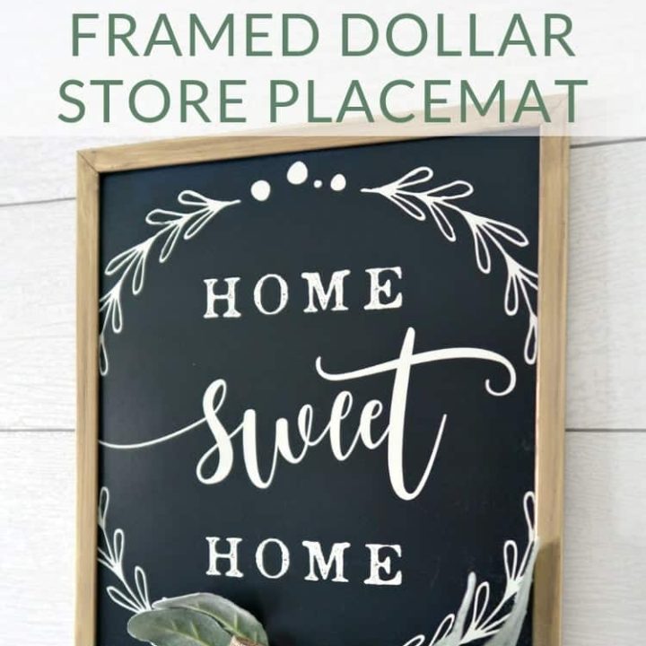 Create farmhouse style wall art for a fraction of the cost of retail with this easy tutorial. This pretty framed placemat wall decor is all sourced from the dollar store.