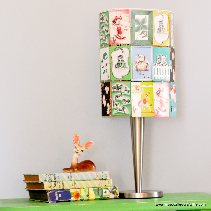 Learn how to craft a one-of-a-kind lighting fixture for your space with an upcycled vintage playing card lampshade. This is such a statement piece!