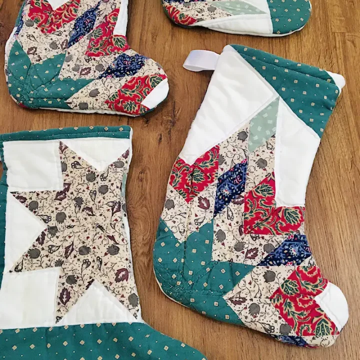 Turn a vintage quilt into festive DIY Christmas stockings! Learn creative upcycling ideas to make your own unique holiday decor. These stockings will make a memorable addition to your Christmas decorations that you can use year after year.