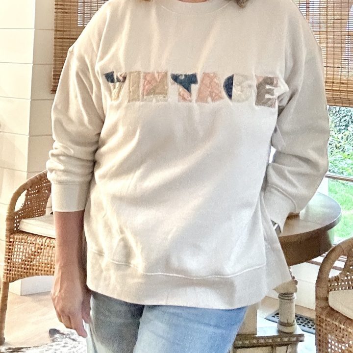 Learn how to create a unique DIY sweatshirt with tattered vintage quilt pieces. This is such a clever project that no one else will have!