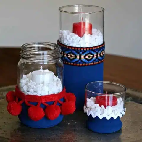Add a patriotic touch of red, white and blue to your home decor with these fun and festive candle holders!