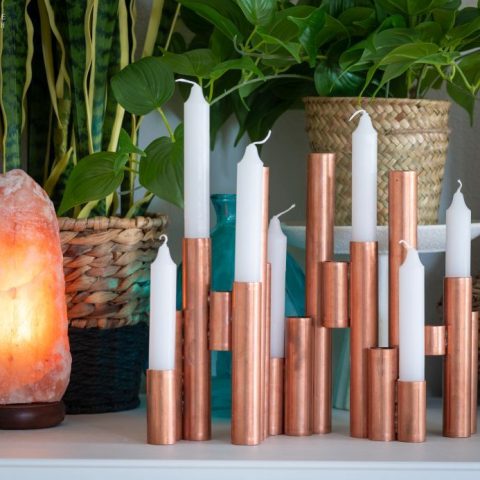 If you don't have any copper pipes in your stash, you can easily find them at the hardware store. They are surprisingly easy to cut and turn into a stunning collection of taper candle holders. Check out the DIY!