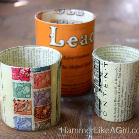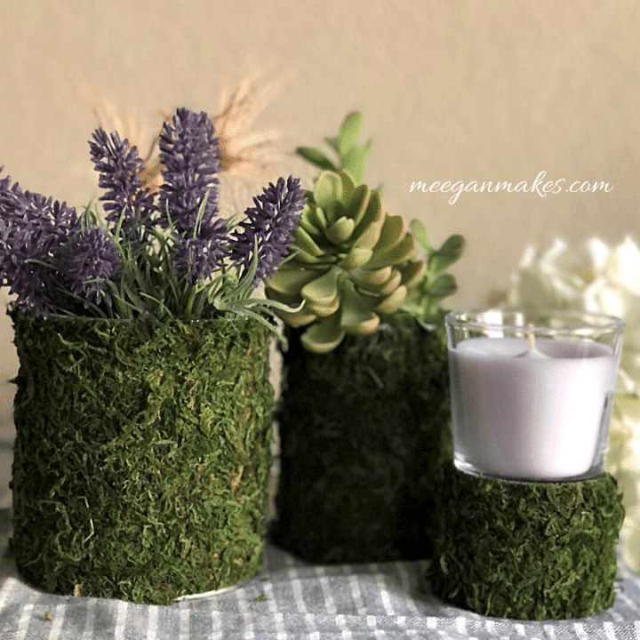 Tin can crafts are all the rage. They are cheap, easy to find and so versatile! Check out these pretty moss style candle holders from Meegan at What Meegan Makes.