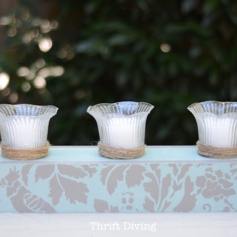 You may have old ceiling fan lights in your garage or basement. Look at how pretty they are turned into a tabletop candle holder! The wood base can be left natural or painted any color you like.