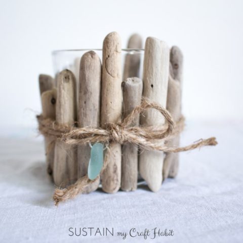 Collect driftwood pieces on your next beach trip to make the cutest coastal style votive holder. Love the natural beach vibe.