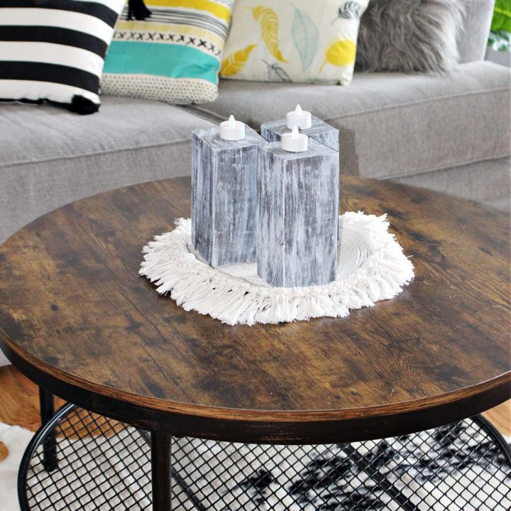 Concrete crafts are getting more and more popular. If you want to try an easier DIY to achieve that look, try this simple candle holder idea using scrap wood.