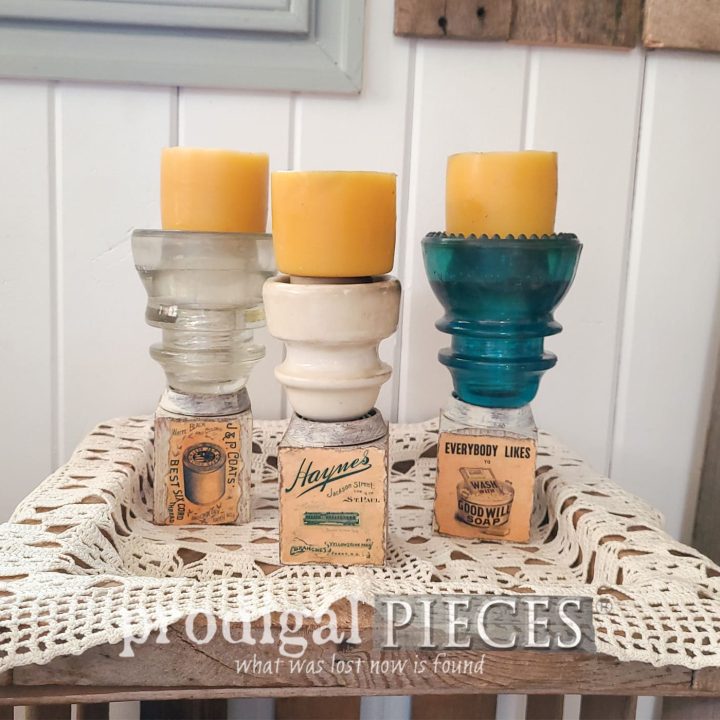Check out garage sales, flea markets or antique stores for antique insulators. There are so many upcycled projects you can use them for. Candle holders are just one great project!