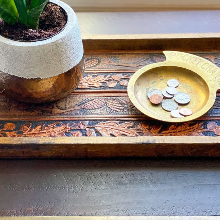 The detailing in this DIY tray is amazing, thanks to the beautiful leather belts. It's a simple upcycle. Simply cut leather belts to fit the length of a wood tray and secure them with glue. What a great addition to any space!