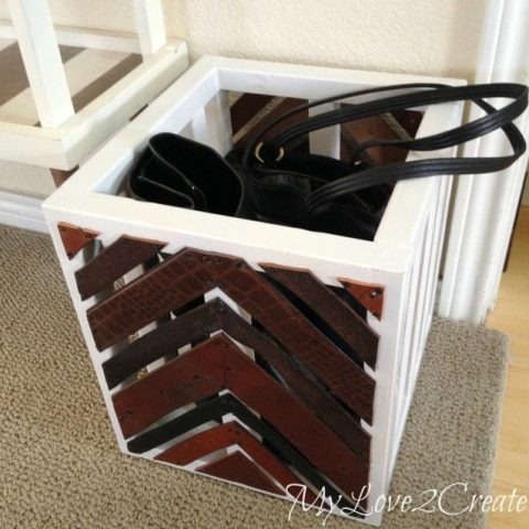 Gail from My Repurposed Life made a really cool crate with leather belts in a fun design. This is great for extra storage too!
