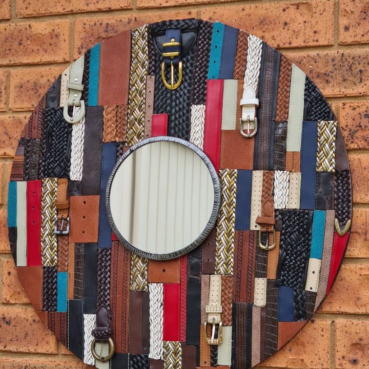 Check out this awesome way to repurpose old leather belts by cutting them up and turning them into unique wall decor. There is so much texture and dimension in this piece!