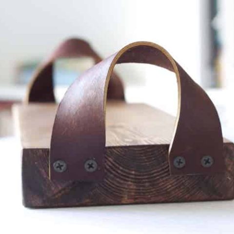 Learn how to create a rustic leather handle tray inspired by Williams Sonoma using repurposed leather belts, all for just $10!