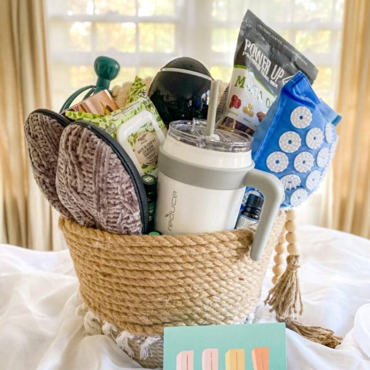 If you tend to wait until the last minute to put together a gift, I've got you covered! Head over to Dollar Tree and pick up a few items to add to a gift basket. It's easy to assemble and can be delivered to the recipient in under an hour. You can't beat that!